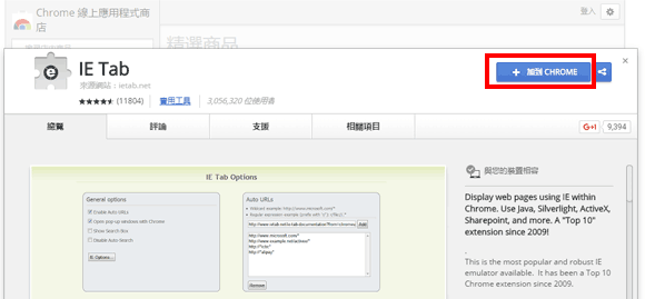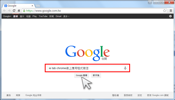 Step 1 請至Google首頁搜尋「IE Tab Chrome線上應用程式商店」。或直接《點此開啟搜尋結果》。