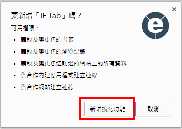 Step 4 新增完畢後,Chrome瀏覽器右上角會出現一「IE圖示」,請再點選此圖示。