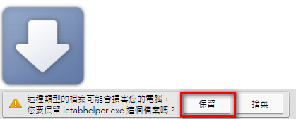 Step 5 此時會自動下載ietabhelper.exe,請按【保留】。