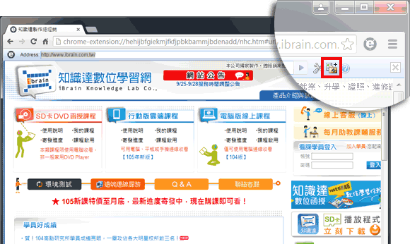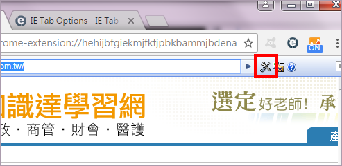 四、開啟Chrome、使用IE Tab開啟知識達學習網Step 1 請在Address位置列輸入知識達學習網網址-http://www.ibrain.com.tw。